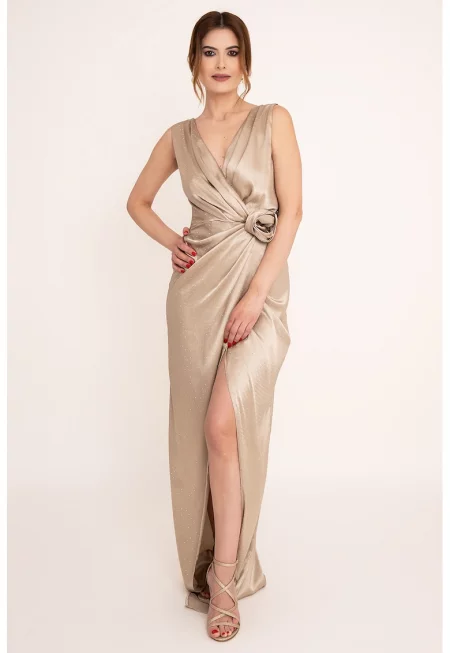 Дълга сатенена рокля Lilith - Бежов