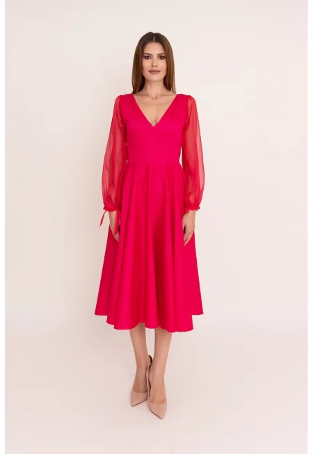Разкроена рокля Helena с шпиц - Червен