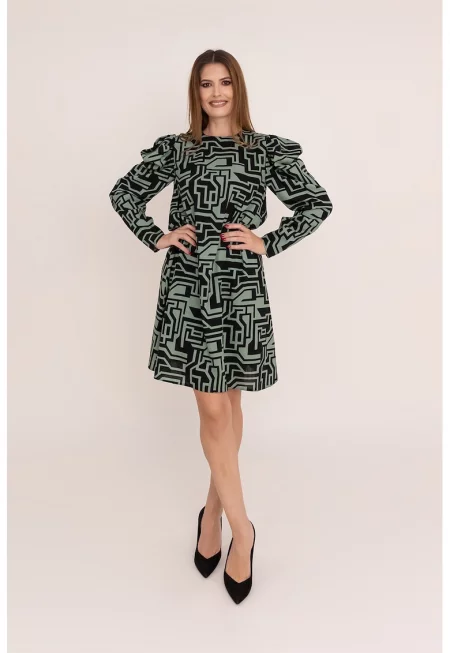 Рокля Yara с лен с десен - Зелен/Черен