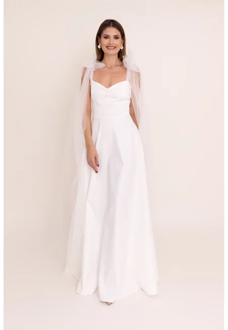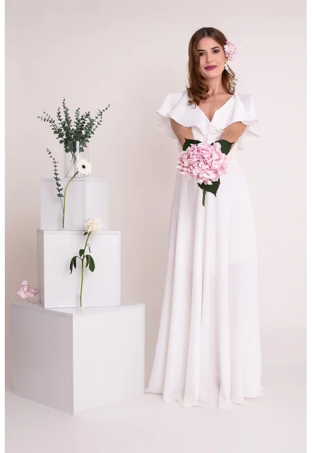 Дълга рокля Kyra с шпиц и дипли - Бял