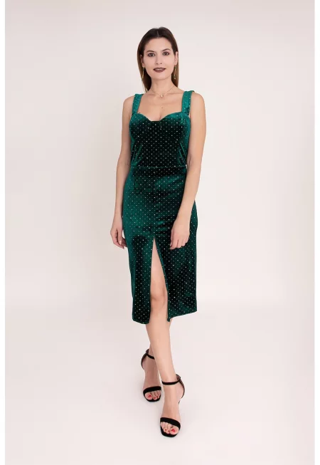 Кадифена рокля Jade с цепка отпред - Тъмнозелен