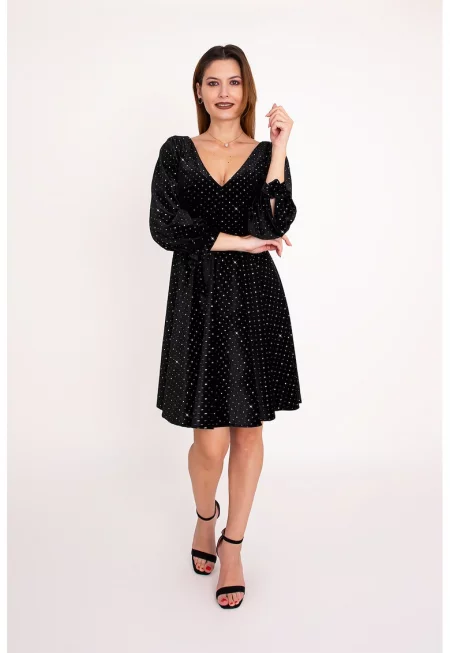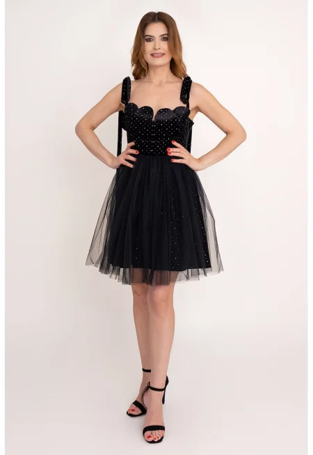 Разкроена рокля Noir Velvet с декоративни камъни - Черен
