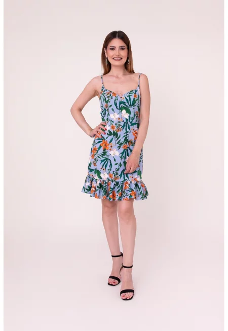 Разкроена рокля Victory с флорални апликации - Небесносин