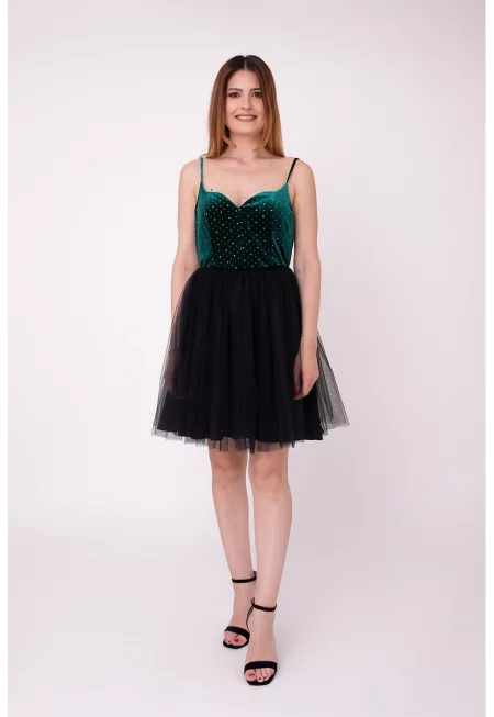 Разкроена рокля Bloom с панделка на гърба - Черен/Тъмнозелен