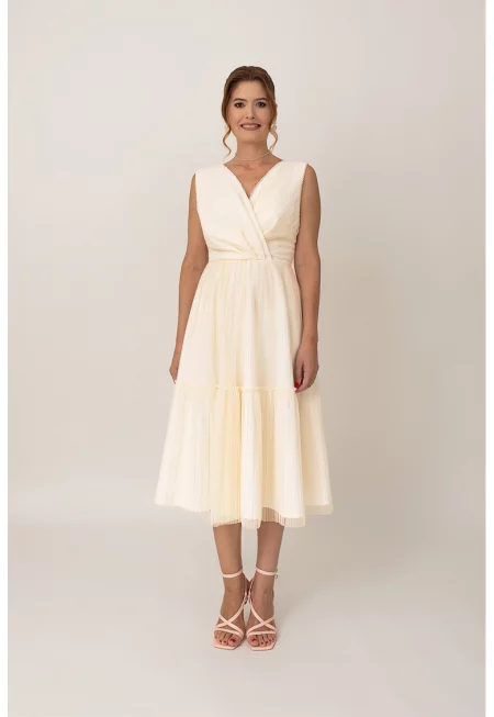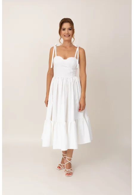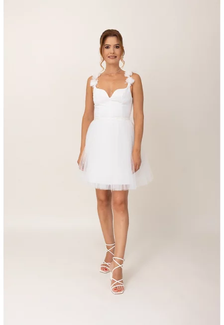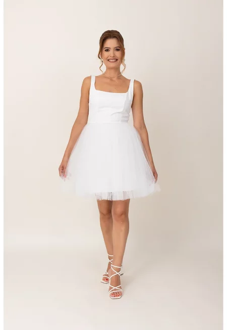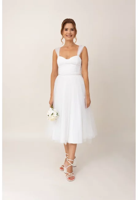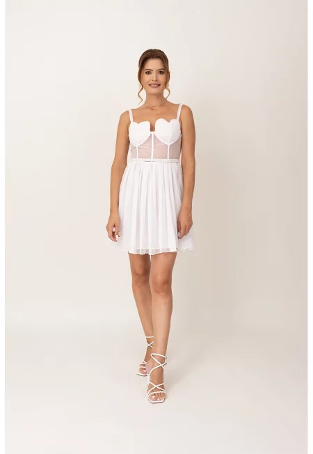 Разкроена рокля със сърцевидно деколте - Бял/Прозрачен