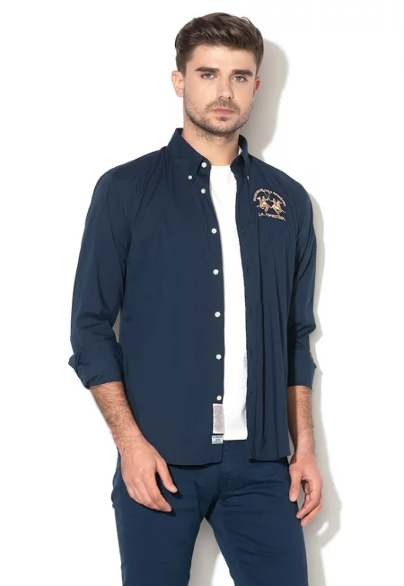 Риза със стандартна кройка и бродирано лого