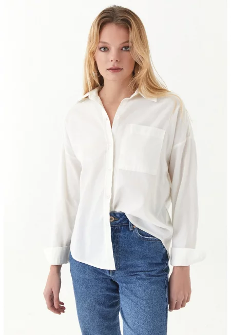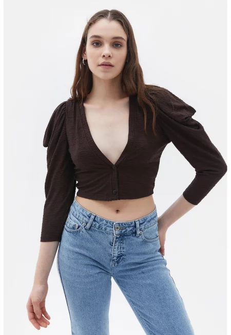 Къса блуза Popbuzgom с бухнали ръкави - Бял -