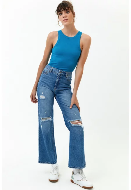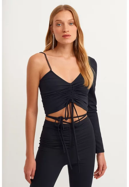 Къс топ с връзки на подгъва - Тъмновиолетов -