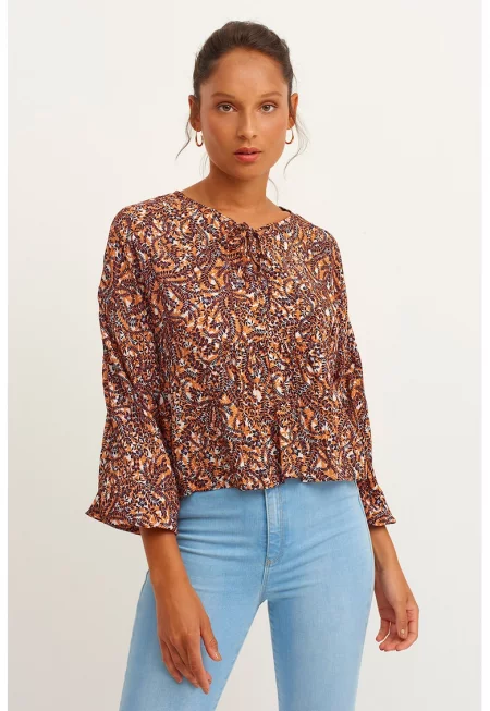 Блуза с 3/4 ръкави - Оранжев - Аленочервен - Син -