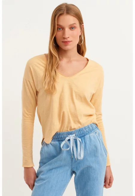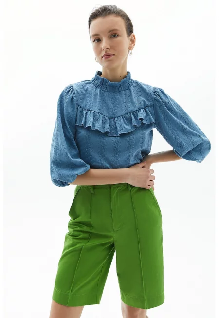 Къса блуза Popbuzgom с бухнали ръкави - Сламеножълт -