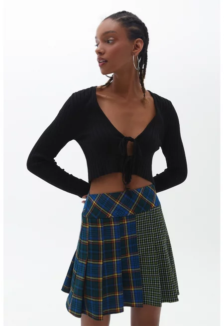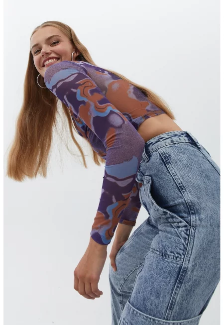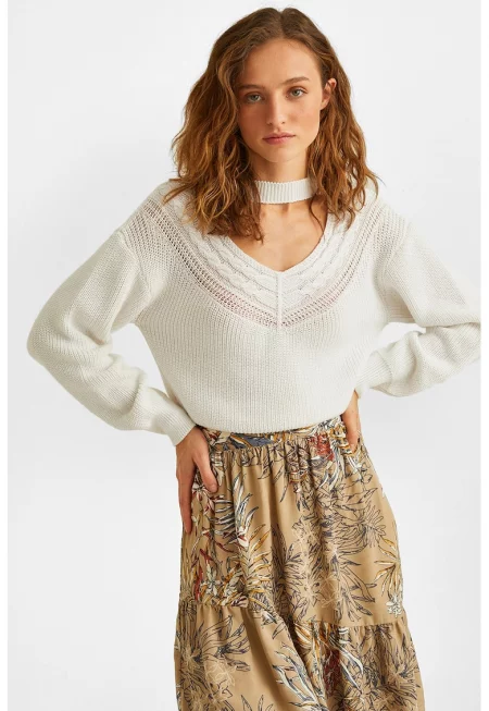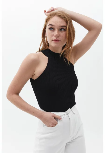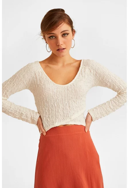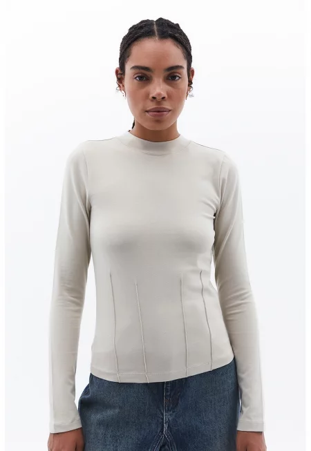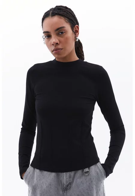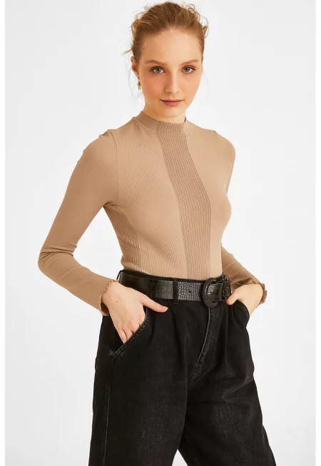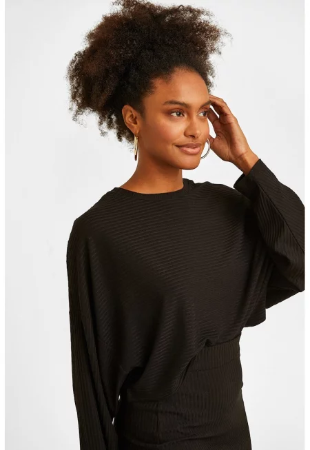 Рипсена миди рокля с дълги ръкави и цепка встрани