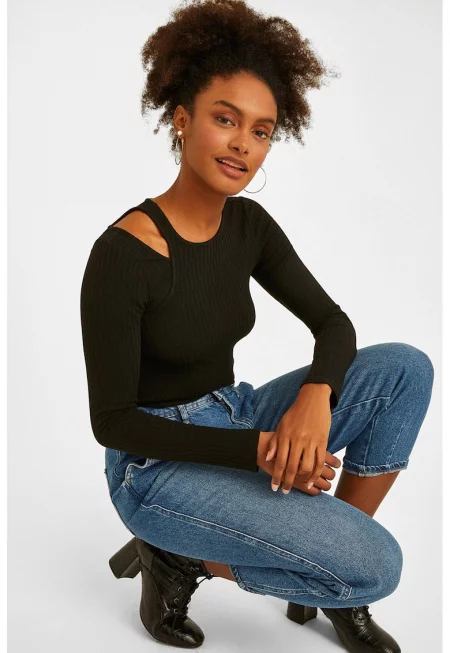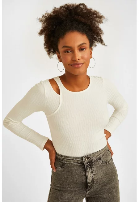 Пуловер с отвори на раменете