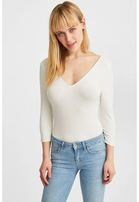 Слим пуловер с голи рамене и 3/4 ръкави