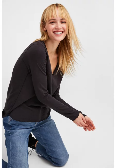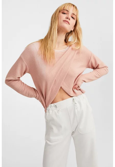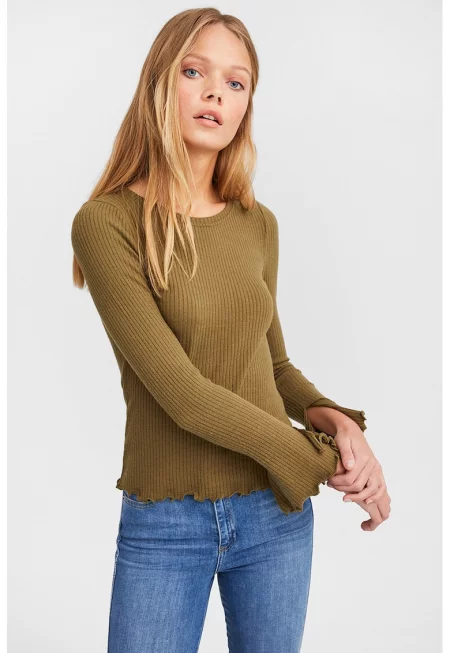 Рипсена блуза с вълнообразен подгъв