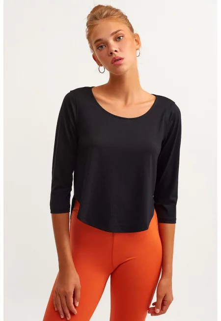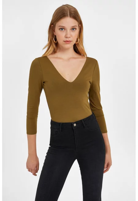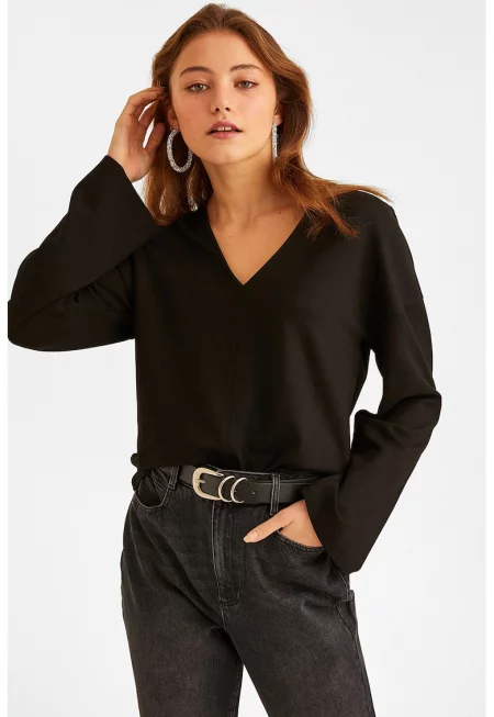 Къса блуза с шпиц и дълги ръкави