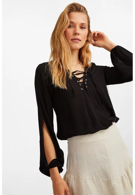 Блуза с отвор на ръкавите