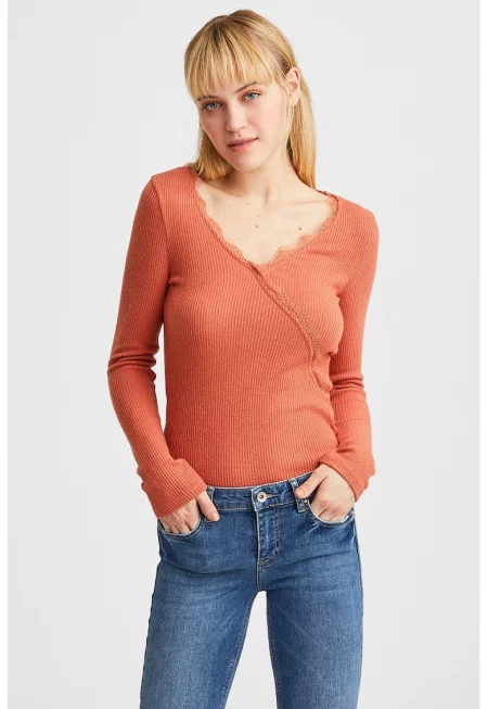 Рипсена блуза с дантела