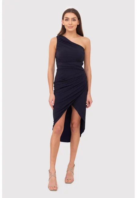 Миди рокля с едно драпирано рамо - тъмносиня DA1770 NAVY