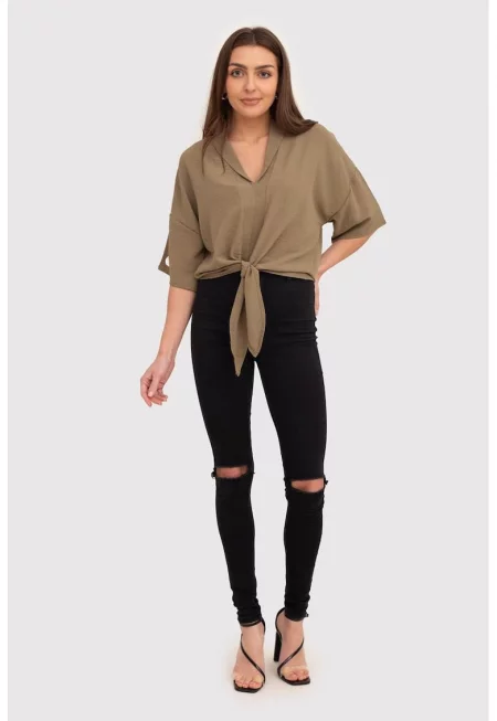Блуза с къс ръкав и декоративен колан TA578