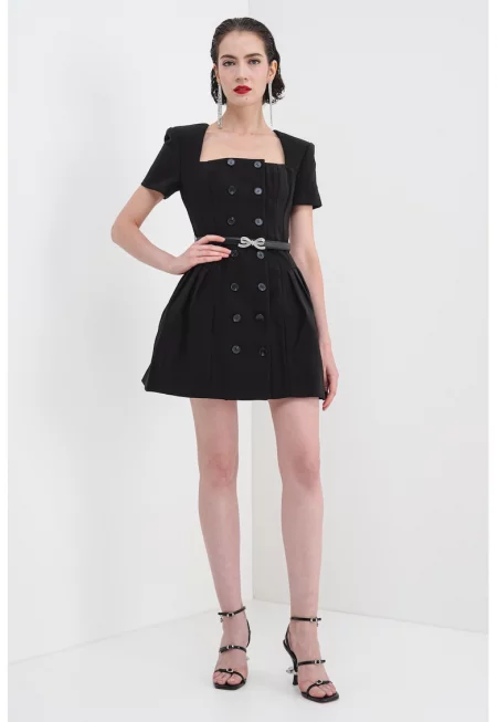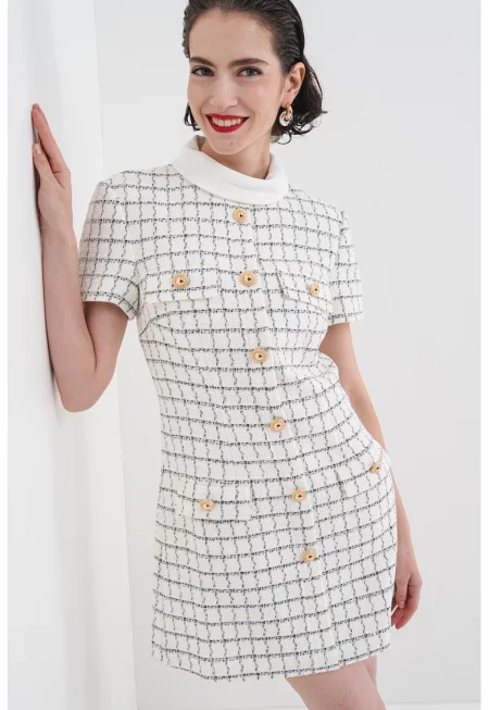 Къса рокля на каре с вълна с декоративни копчета