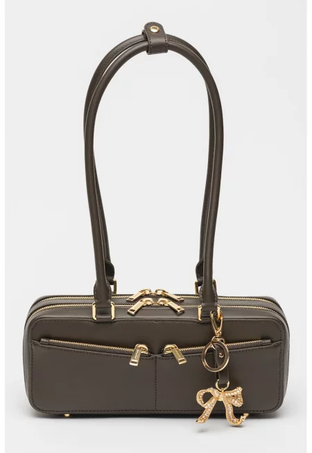 Кожена чанта за рамо с метални висулки