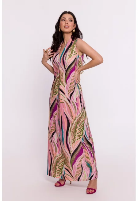 BeWear Дамска макси рокля Vaknim B283 Кафяв/Зелен