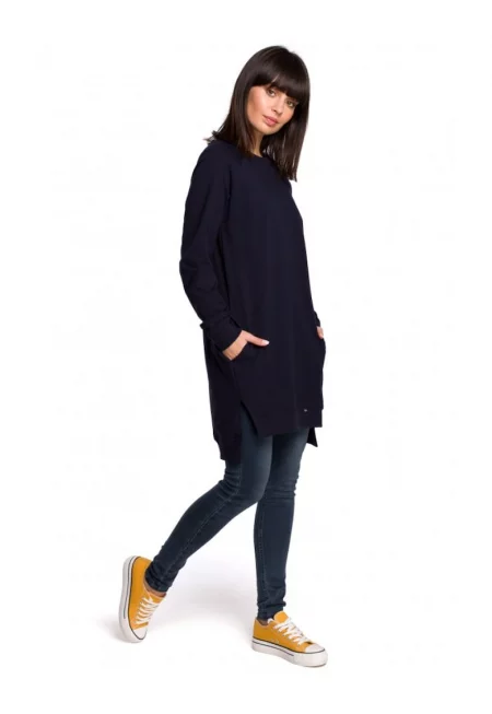 Дамска блуза - тип туника - памук - еластан - син 65450