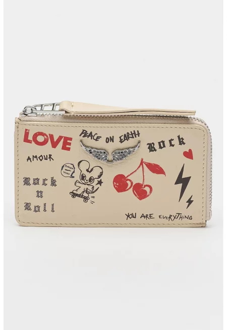 Кожен калъф за карти с фигурален принт