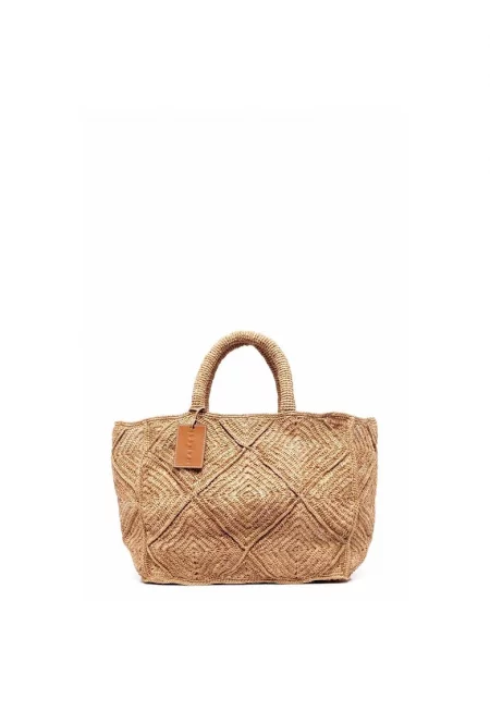 Дамска чанта естествена рафия - кафява - Един размер