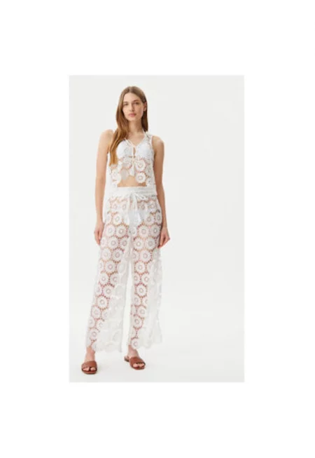Дамски панталон - 304990472 - Памук - Бял
