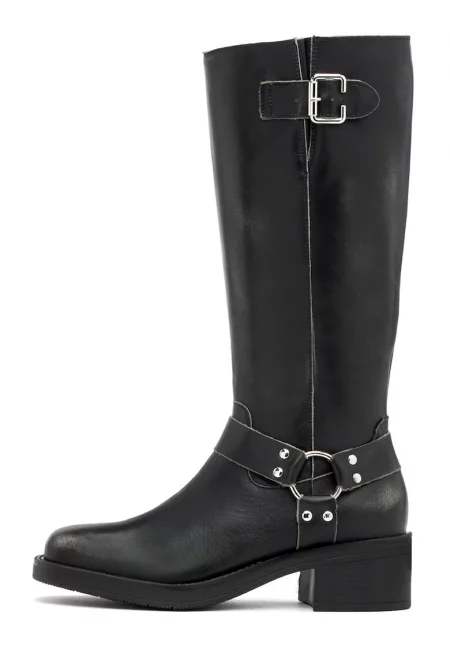 Кожени ботуши до коляното Kora с масивен ток