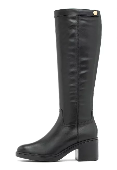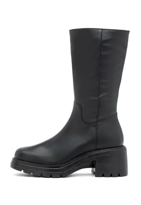 Високи кожени ботуши с масивен ток