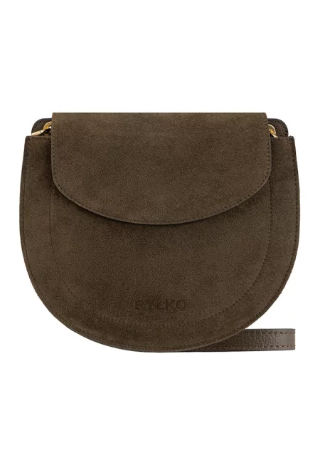 Велурена чанта с капаче - Сиво-кафяв