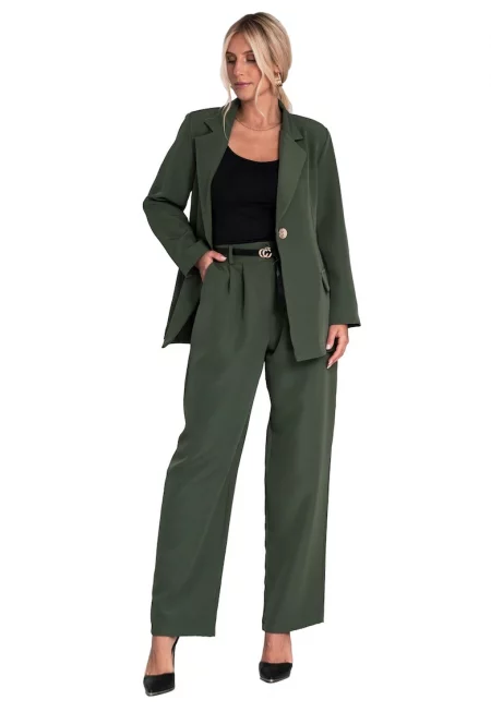 Дамски костюм - широки панталони - зелен - полиестерен материал