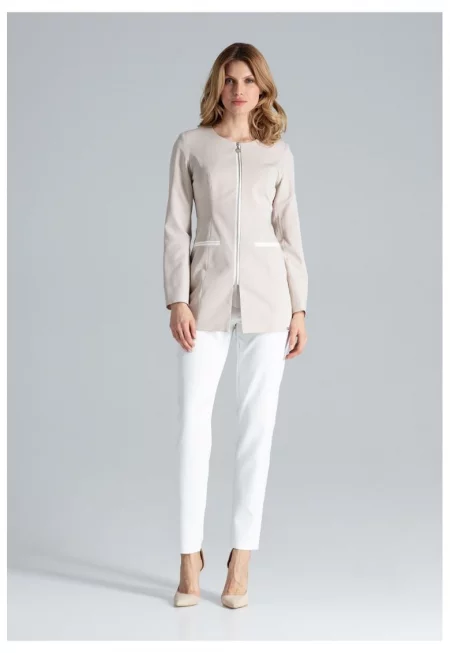 Късо яке - капитонирано - бежово - полиестер - с висока яка