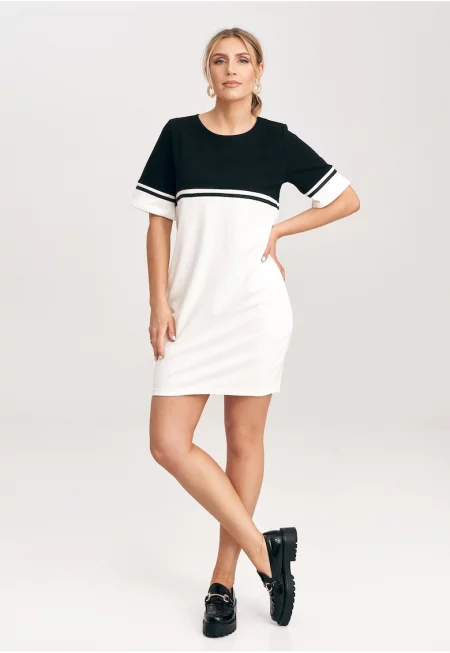 Суичър рокля - памук - екрю-черно