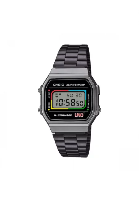 Основни характеристики Механизъм: кварцов Стил: ежедневен Тип дисплей: смесен Функции: показва дата Степен на водоустойчивост: 10 atm Циферблат Материал на стъклото: пластмаса Цвят циферблат: черно Вид разграфяване на циферблата: арабски цифри Рамка Форма на рамката: ...
