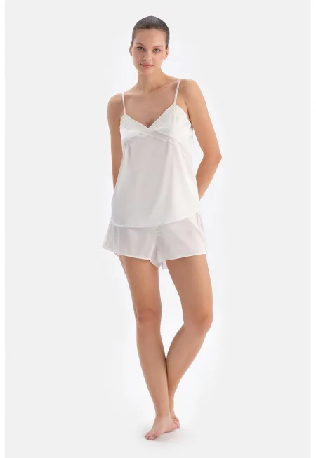 Къса пижама с дантела - Бял