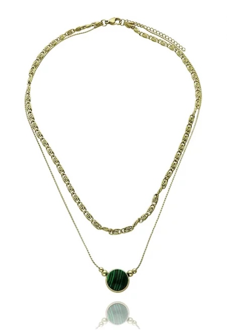 Позлатено колие със зелен камък FN99904