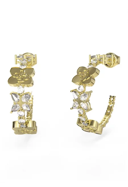 Характеристики Тип продукт: обеци Материал: месинг Цвят: златист Детайли: избягвайте контакт с алкохол - парфюм - ацетон - препарат - абразивни повърхности - удряне - надраскване Закопчаване: винтова пръчка Опаковка: продуктът се доставя в персонализирана опаковка. ...