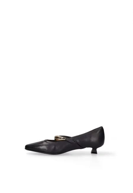 Характеристики Тип: с ток Материал: eстествена кожа Цвят: златист Принт: без принт Стил: ежедневен Връх: остър Тип на тока: класически Закопчаване: катарама Състав Горна част: кожа Материал интериор: кожа Материал подметка: други материали Размери Височина на tок: 9 cm