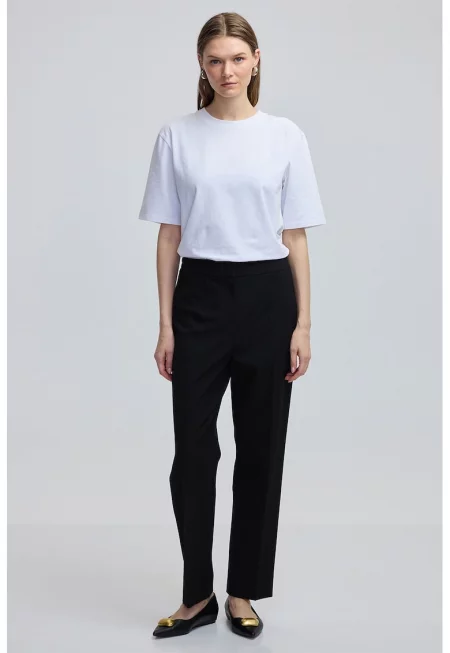 Характеристики Цвят: черен Стил: елегантен Материал: синтетичен - вискоза Принт: без принт Кройка: права Дължина: дълъг Талия: висока Джобове: 2 странични - 2 обшити Закопчаване: цип Състав Външна част: 70% рециклиран полиестер - 30% вискоза
