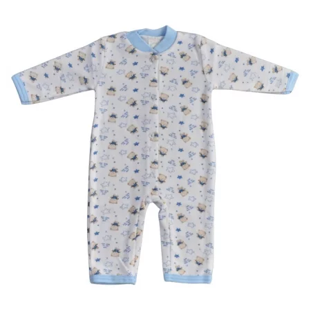 Сладурски и закачлив памучен бебешки гащеризон с дълъг ръкав и предно закопчаване, в бяло и жълто, изпъстрен с цветни и сладки слончета, с ластик на ръкавите. Моделчето е изработено от приятна и качествена памучна материя, симпатично и удобно, практично и лесно за ...