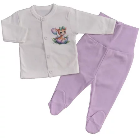 Сладурски и памучен бебешки комплект от две части: памучно бебешко боди с дълъг ръкав и предно закопчаване в зелено със сладка и симпатична картинка, съчетанo с едноцветни и изчистени памучни бебешки ританки с широк ластик в зелено. Моделчето е изработено от приятна ...