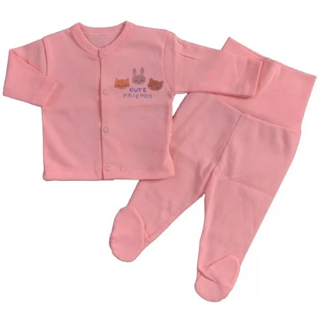 Сладурски и интересен памучен бебешки комплект от две части: памучна бебешка горница с дълъг ръкав и предно закопчаване с цип в розово, модерна и раздвижена с красиви къдрички и нежна картинка, с ластик на ръкавите, съчетана с едноцветни, изчистени памучни бебешки ...