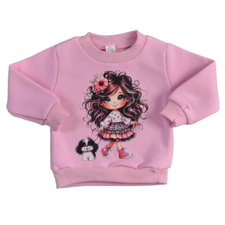 Спортно елегантен памучен детски комплект от две части: сладурска и раздвижена свежа памучна детска горница с дълъг ръкав в синьо, с красиво и пухкаво кученце, закопчава се с цип, с ластик на кръста и ръкавите, съчетана с едноцветна и изчистена памучна детска долница с ...