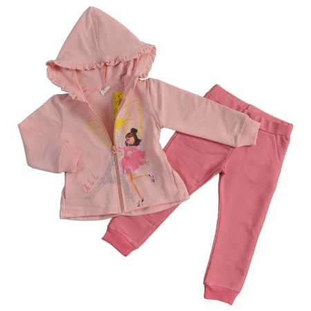 Свеж, памучен и приятен детски комплект за малки и големи момичета от две части: памучна детска горница с дълъг ръкав в лек и приятен светлорозов цвят, с качулка, с ластик на ръкавите, закопчава се с цип, със сладка и закачлива картинка на любимия герой Стич от ...