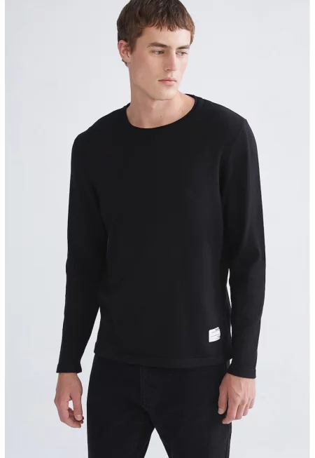 Характеристики Цвят: тъмносин Принт: без принт Материал: памук Стил: ежедневен Кройка: стандартна Закопчаване: без закопчаване Модел: обло Дължина ръкав: дълъг ръкав Детайли: релефна повърхност - дишаща материя - мек памук Състав Външна част: 100% памук