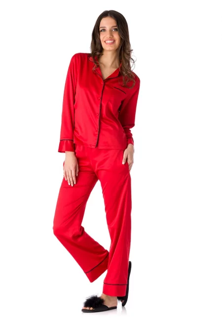 Пижама с джоб на гърдите - Червен
