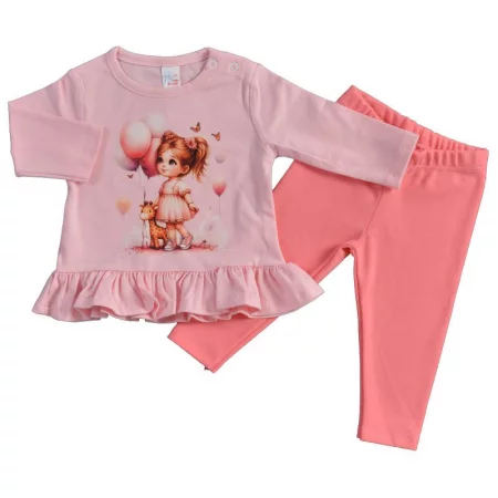 Симпатична памучна детска блуза с дълъг ръкав, в цвят праскова, с интересна и красива предна част със сладка картинка, с раздвижена и модерна кройка с къдрички на рамената, с ластик на кръста и ръкавите ( малките размери имат копчета на рамото за по-лесно обличане). ...